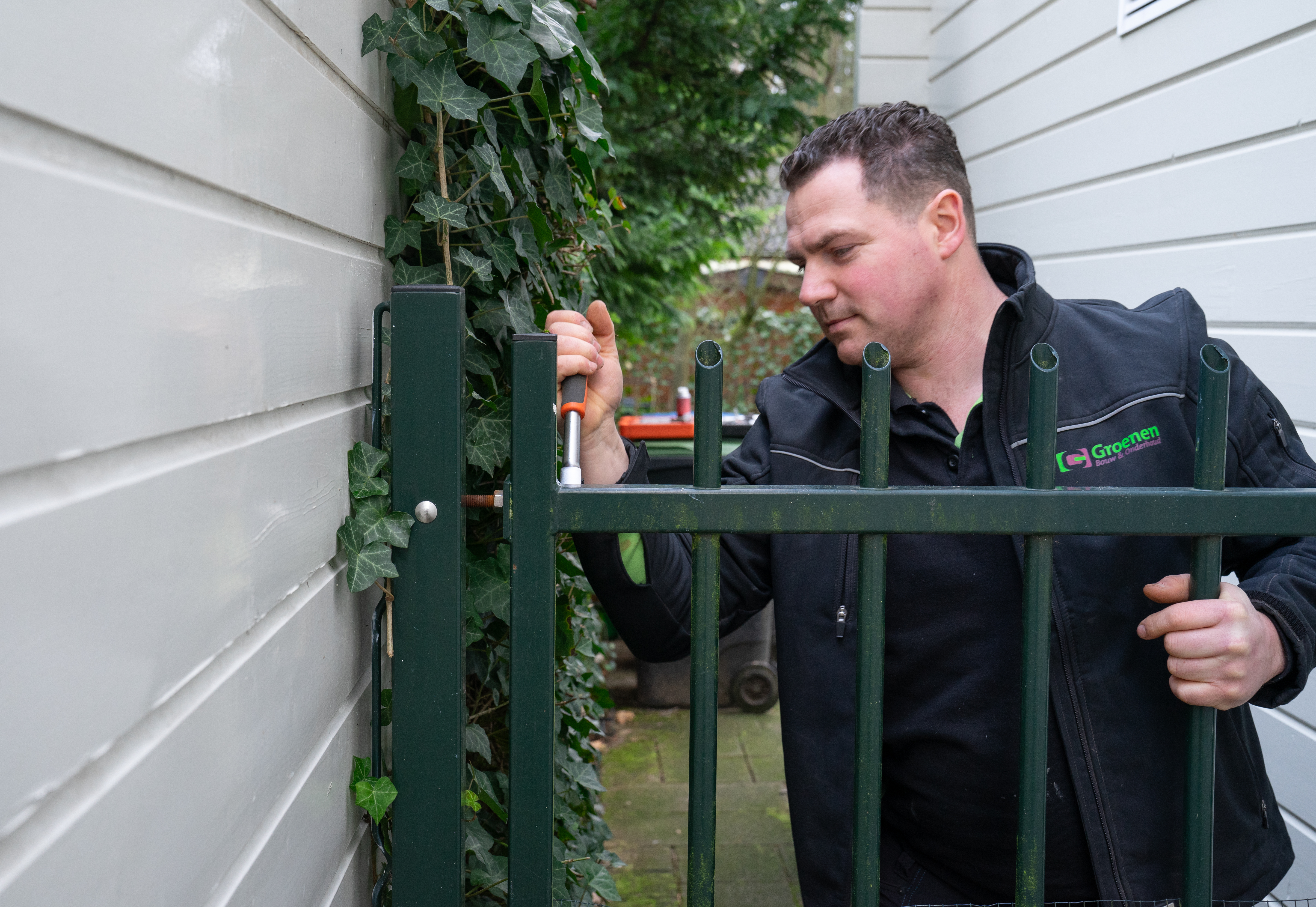 Patrick werkt iets meer dan 4 jaar bij Groenen. Hij doet reparaties en klussen bij bewoners thuis. In de meeste gevallen bij huurders van Woonbedrijf. "Vooral hang- en sluitwerk, lekkages, onderhoud aan keukens en badkamers, het repareren en vervangen van poorten en deuren...", somt hij op als werkzaamheden. "En één keer in de 2 of 3 weken plaats ik een nieuwe keuken. Samen met een collega. Dat is een grotere klus." Een ander team van Groenen knapt lege woningen op. "Da’s niks voor mij, veel hetzelfde werk. Ik hou van afwisseling. In mijn werk is het altijd een verrassing wat ik tegenkom en wat ik nodig heb. Dat maakt het leuk."