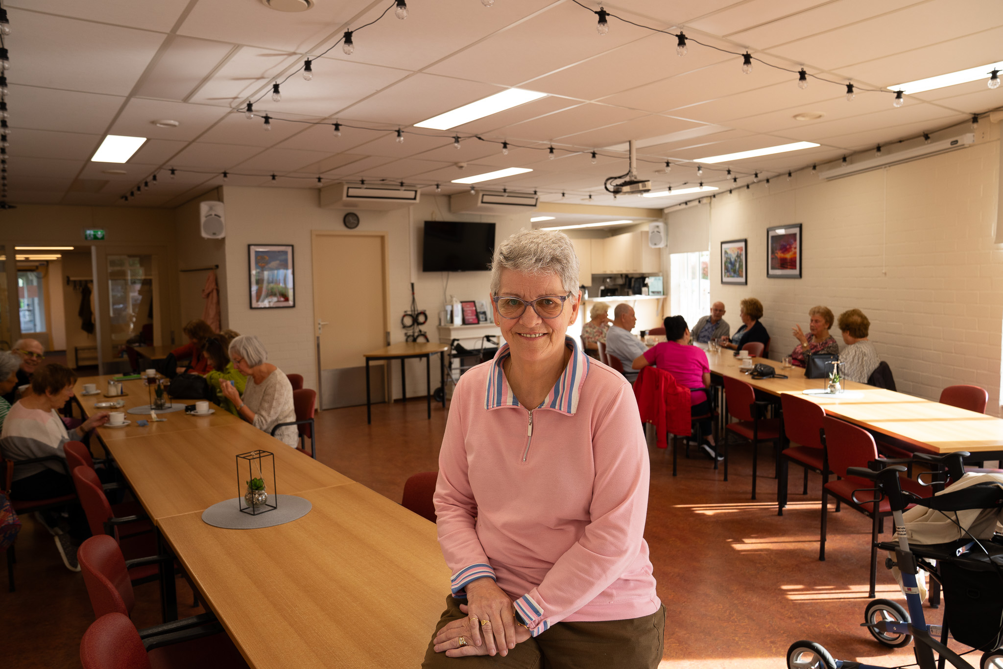 "We hebben vaste activiteiten hier", zegt Riky. "Zoals mozaïeken, schilderen, kaarten, yoga, koersbal, biljarten en kienen. Ook de FNV, KBO en De Zonnebloem komen hier om te vergaderen of voor een activiteit. Gemiddeld zijn er elke week zo’n 150 vaste gasten." Ook verhuren ze zalen aan andere mensen of organisaties. "Laatst was het zo druk dat alle zalen en zelfs de keuken bezet waren", zegt Annelies.