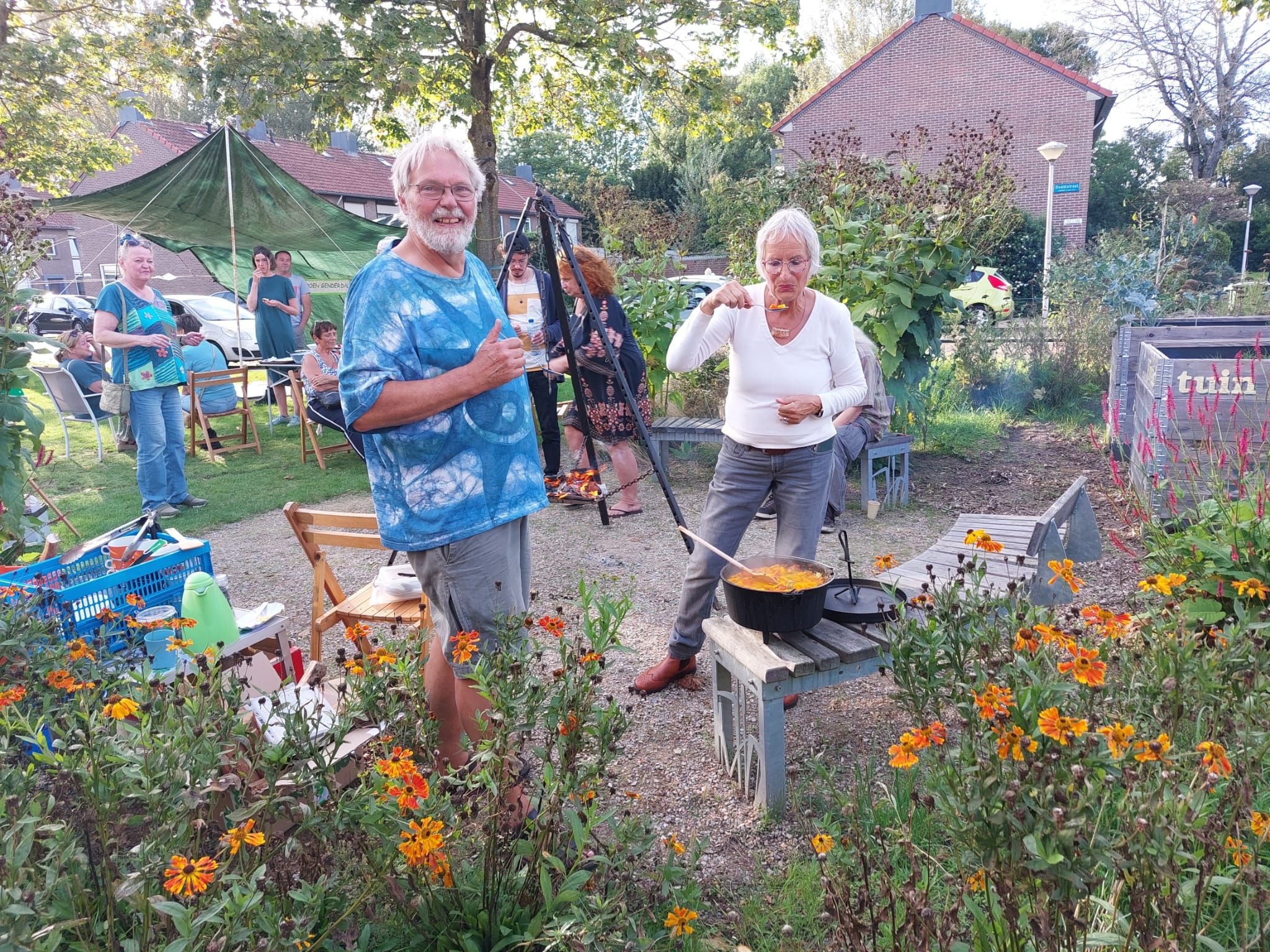Ze organiseerden vorig jaar oktober samen het Oogstfeest, in de Vivaldituin. "Twee muzikanten speelden de muziek van Vivaldi, de componist waar de tuin naar is vernoemd. Van zelfgekweekte pompoenen werd pompoensoep gemaakt, bereid op houtvuur." Zo’n 50 buurtbewoners kwamen erop af en leerden elkaar kennen.