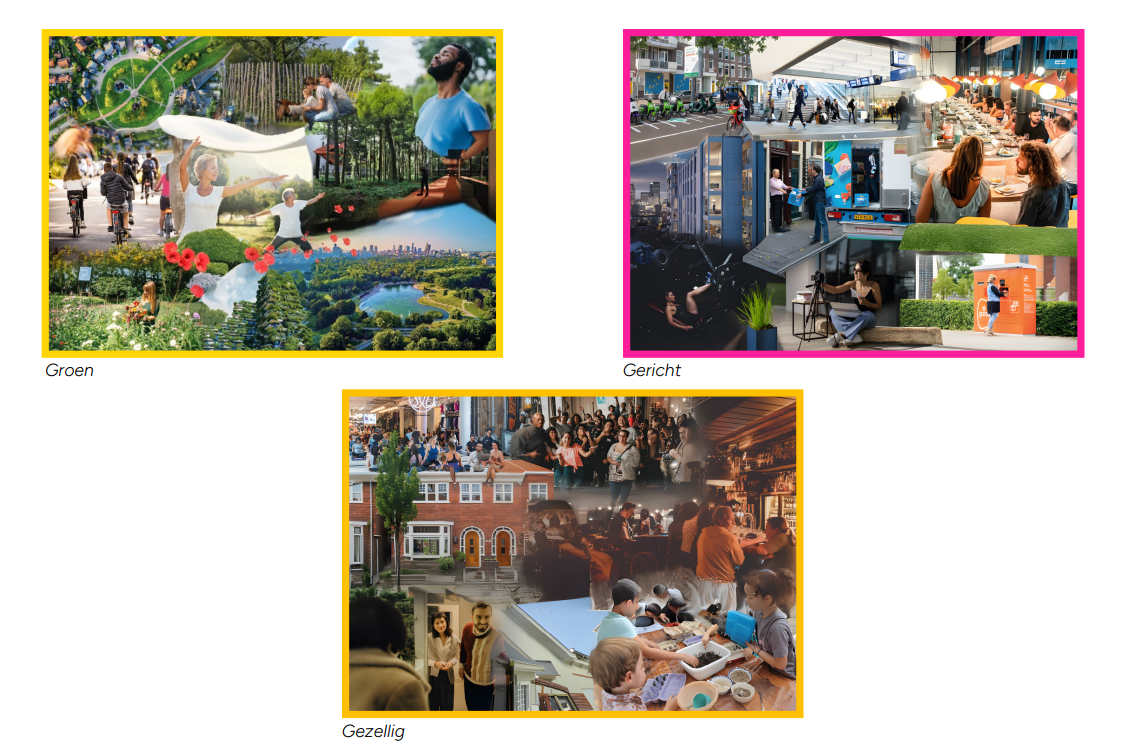 Alles in deze toekomstvisie roept "gezelligheid" op bij de deelnemers die voor dit beeld kozen. Het gaat over contact met anderen en samenleven. Bewoners willen buurten waar mensen elkaar groeten, samen dingen doen en elkaar helpen. Kleinschaligheid en historische elementen werden vaak genoemd als belangrijke kenmerken.