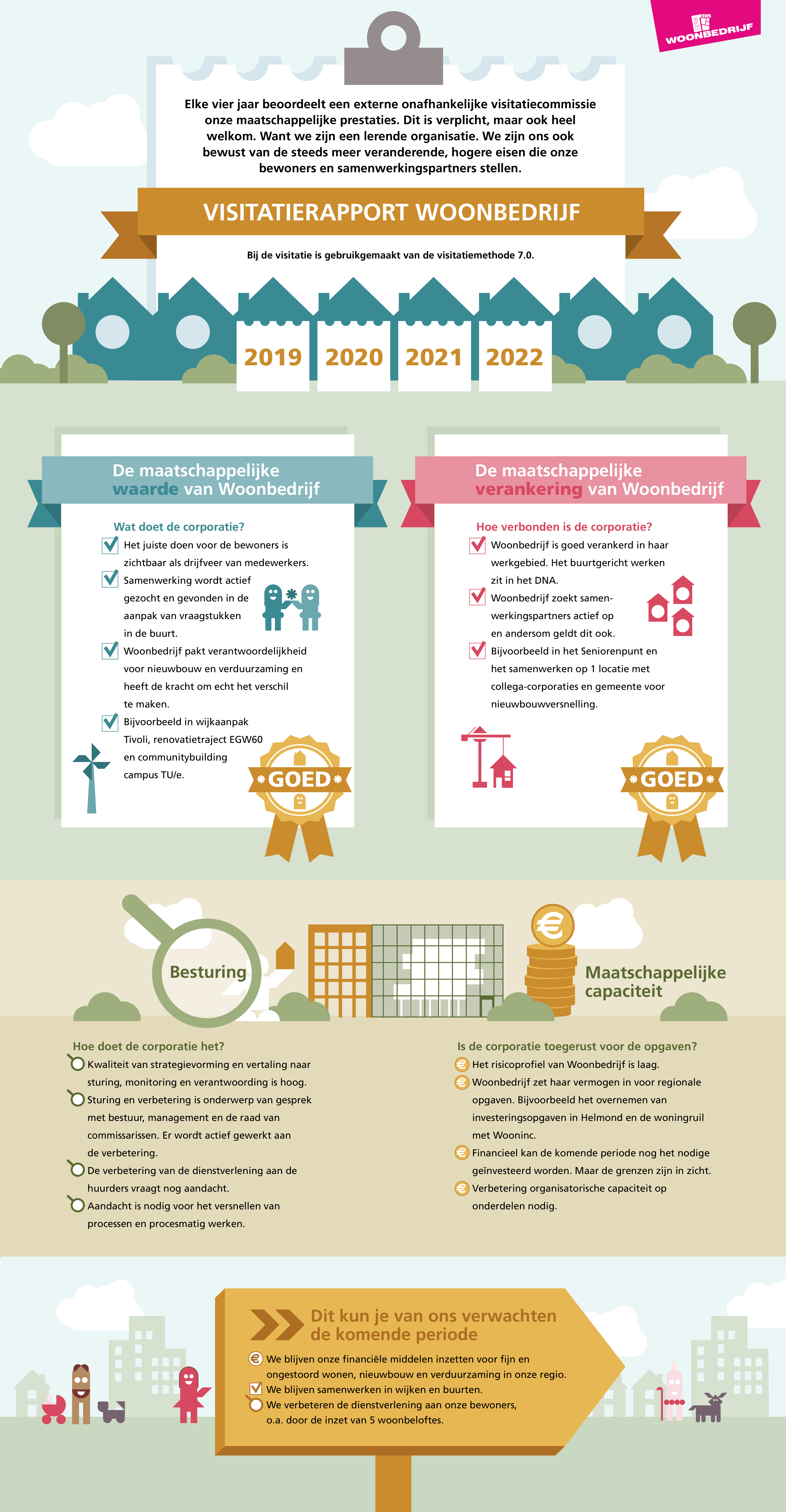 Het volledige visitatierapport is ook te bekijken. Daarin lees je ook de reactie van Woonbedrijf op het visitatierapport.
